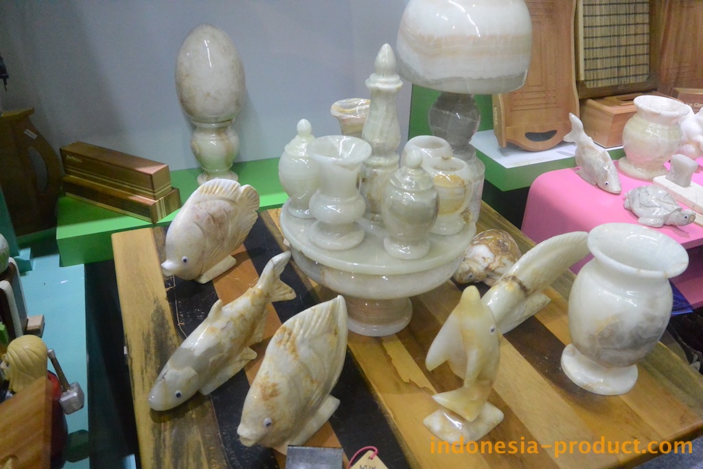 Besides on that, there are various kinds of beautiful and durable stone craft products that made from onyx stone or marble products. This kind of stone usually used for craft and interior need. There are many natural stone collector like to have those stone products for their home decoration. This workshop also create and carve it into unique and wonderful marble products, such as; miniature in animal form, vases, decoration lamp, handicraft and many more. With motto “Antique Always Take of Quality”, Antique Natural Wood also provides wooden tissue box, placemat for Al-quran, and woven craft with unique design and best quality.