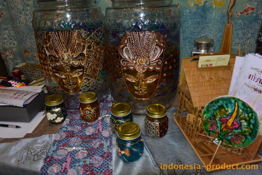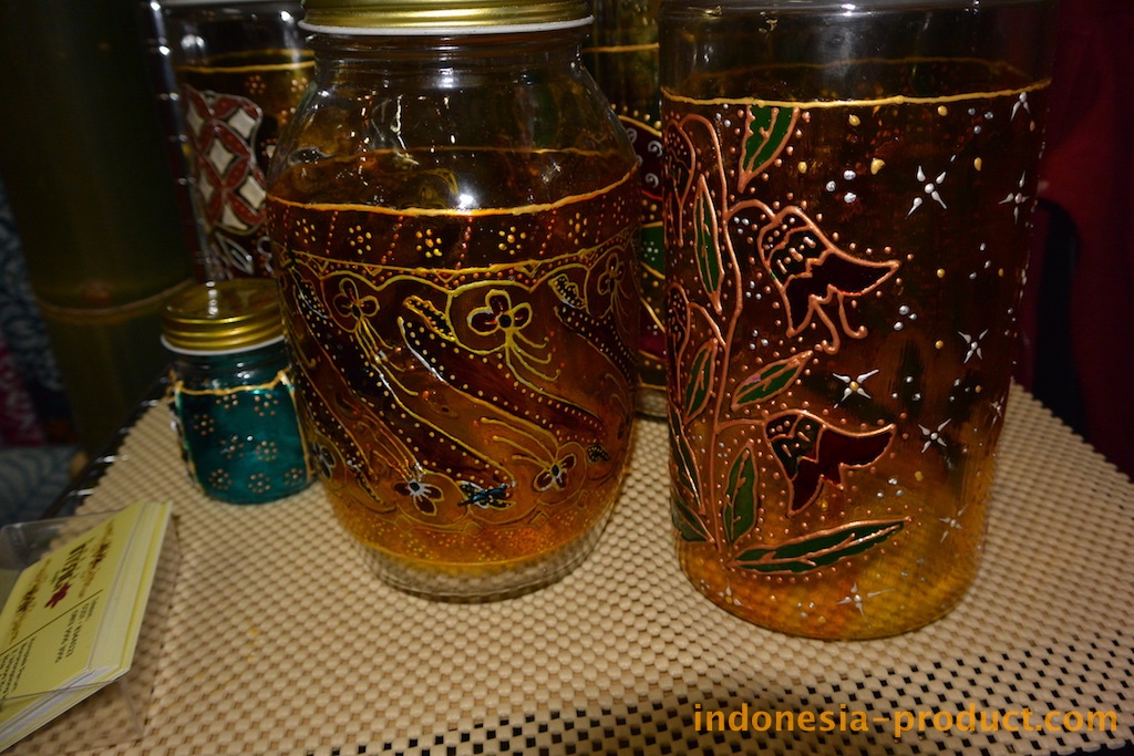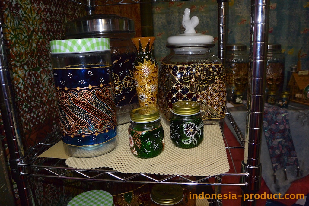 Designs and motifs of Batik Mago is raised from the culture and life in Bogor both natural and life in Bogor and its communities. In addition to batik stamp and painting as well as batik couple, Batik Mago also pours batik motif on glass with glass coloring. Batik Mago exhibits various products of batik crafts. Batik Mago gives the impression of ethnic products through paintings that are applied to the surface of functional glass containers, such as jars, bottles and so on. Motifs of Batik painting glass that made Batik Mago are ranging from: butterfly, machetes, mega mendung, etc. To do the painting, Batik Mago uses a special paint which is coated with the durable and secure coating. The choice of colors and motif are very much. Buyers who order in large quantities can be ordered according to taste. Standing for 2 years , Batik Mago who had a workshop in Bogor employs nine employees.