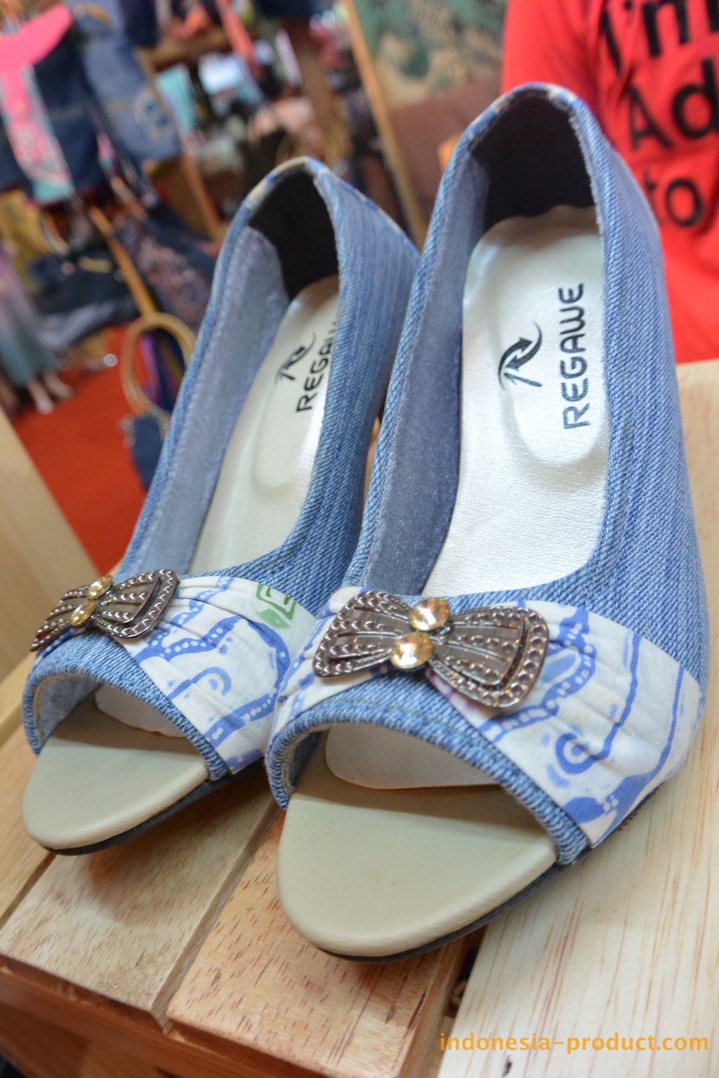 Batikeling & Regawe Shoes is shop of Indonesian batik on denim that presents latest modern and trendy creations in the form of sandals, shoes, and handbags for man and woman who want to look more stylish with batik. Shoes, sandals, and handbags products of this shop combine the beauty of batik motif with the top of jeans material. Selection of jeans material and design model of product are also intended to make batik on denim can be worn in any occasion, formal or semi-formal. In addition to handbag, shoes, and sandals, Batikeling & Regawe Shoes also supllies batik shirt for man and batik fabric with ethnic and beautiful motif. The products come in a distinctive blue color denim and batik patterns that presented in streaks of white grayish color harmony in blue denim. Minimalist motifs with unique design tend to reinforce the impression of trend and elegant on product.