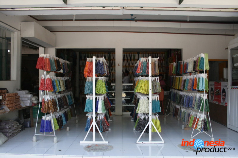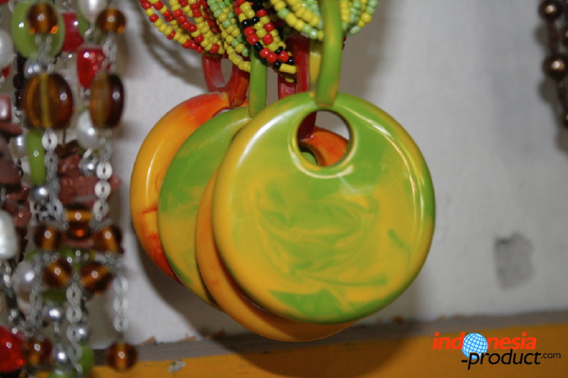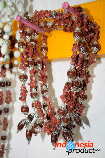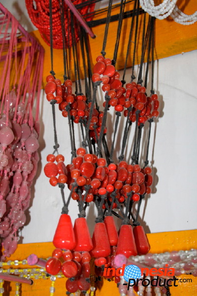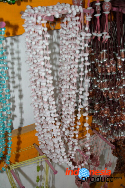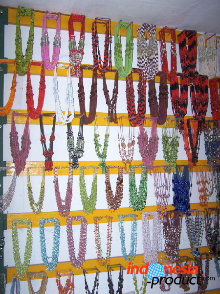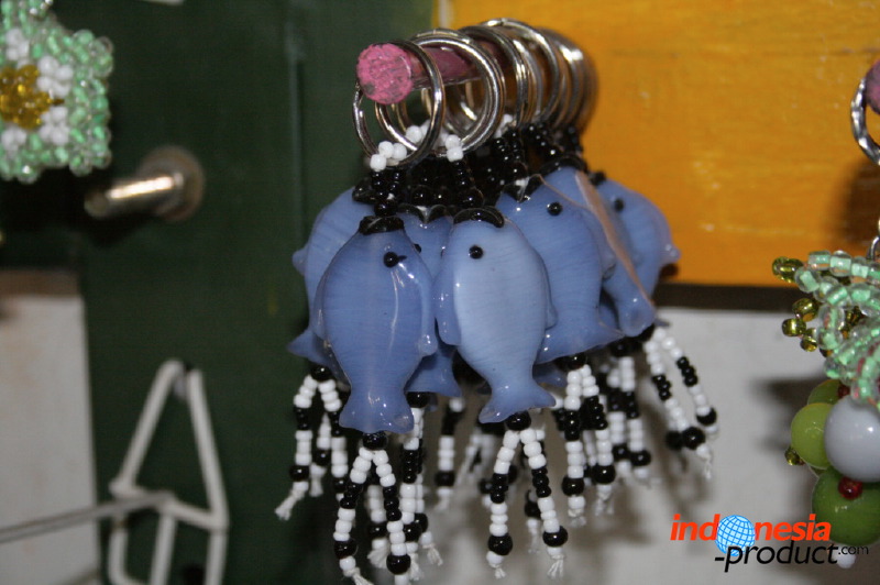 Beads (glass beads) that original from Jombang are from broken glass which is recycled and given a unique color then molded into a variety of accessories. The beads products of Gambang Village, Gudo District, Jombang, East Java are increasingly fluttering not only circulated in Indonesia, but also into worldwide. All accessories jewelries such as necklaces, bracelets, key chains, brooches and belt strands in this gallery are beautiful, unique, and elegant. Type of beads are also increasingly diverse. A variety of beads that displayed on the walls of the store have its shape is not just spherical, but also there are oval, flowers, stars, drops, even the shape of figures of funny animals such as rabbits, dolphin, fish, chickens , monkeys, frogs, etc.