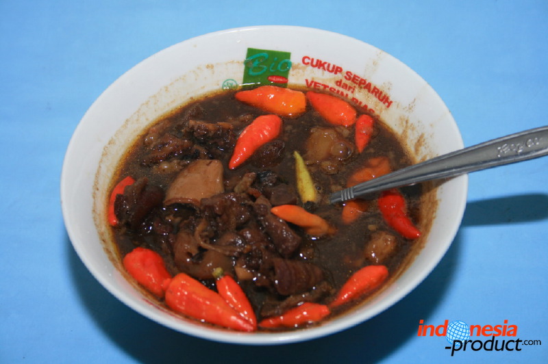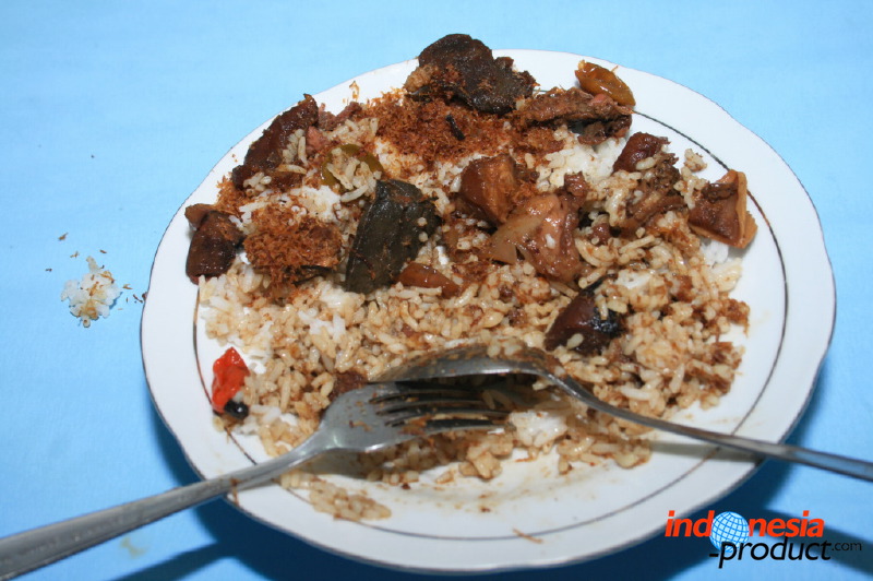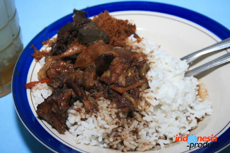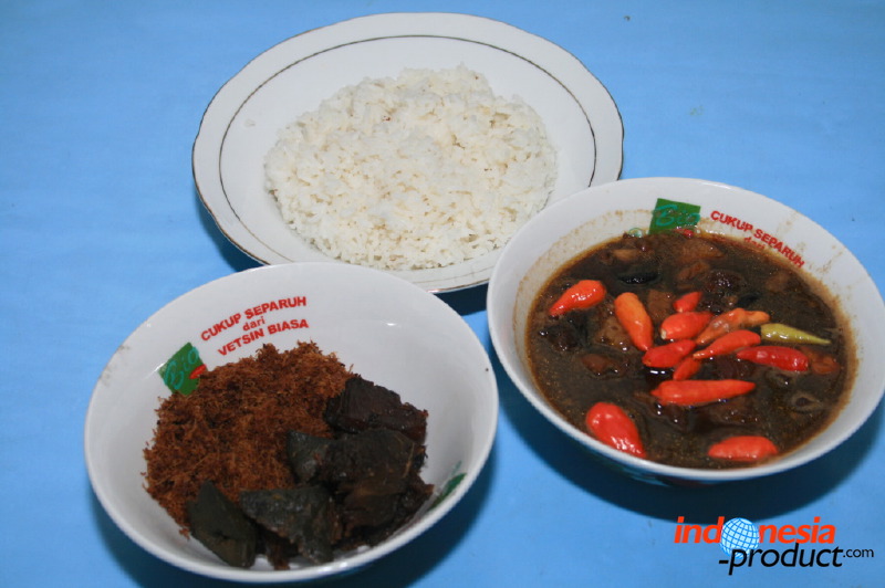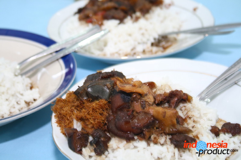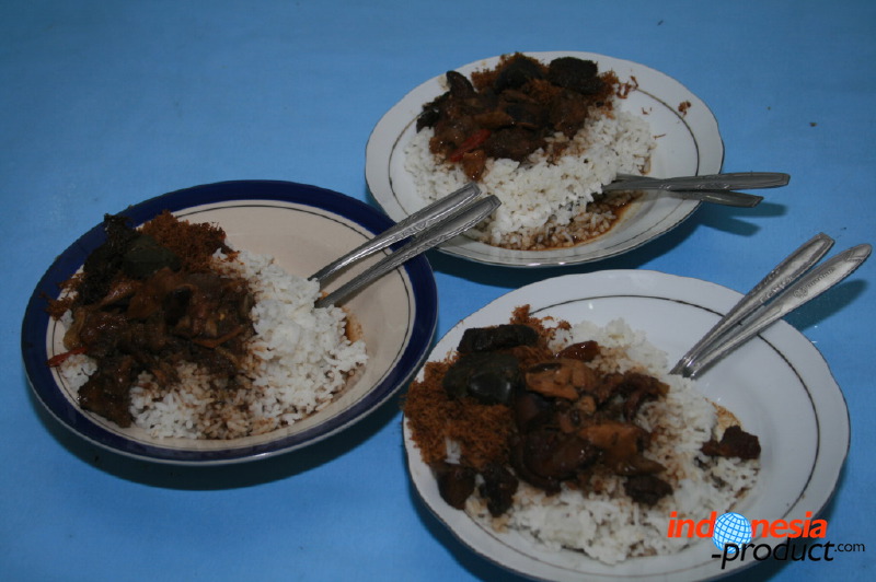 Nasi pindang here is not rice with small tuna fish, but rice with meat that is cooked like a stew. Unlike the typical of nasi pindang in Kudus, Central Java that has texture of thick sauce dressing, nasi pindang from Trenggalek has texture of little sauce dressing and tends to dry. The recipe of nasi pindang from Trenggalek also uses coconut milk and the color of this food is black with the addition of soy sauce, so that nasi pindang looks like rawon. Part of the beef used is meat that has soft texture and located on the inside of the spine, beef liver and kikil with sliced papaya. Seasoning of nasi pindang is used herbs and spices, lime, bay leaves, and kluwek that produce black color on nasi pindang. Uniquely, to produce nasi pindang that has delicious and perfect seasoning seep into the meat, nasi pindang should be allowed to stand one night. Of course, the process will produce a flavor that is delicious and addictive for sure.
