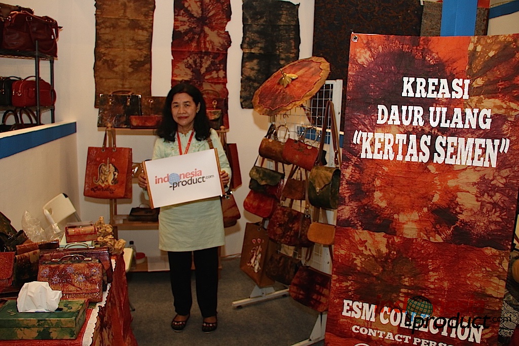 This paper creations center is located in Surabaya, East Java. This place has a lot of handmade products which use cement papers as its basic material. There are many products presented, include handbags, purses, wall hanging, interior, accessories and many more. ESM Collection also welcome to souvenirs order and custom orders; the user can determine their own souvenir need and ESM will produce it.