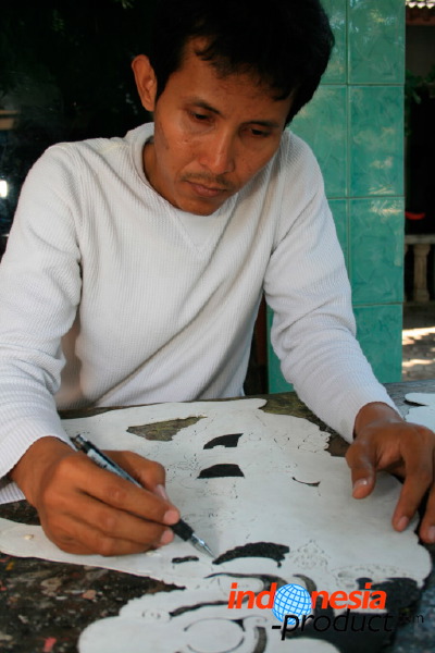If initially only focused on the art of shadow puppet craft, Mr. Suyoto must develop in other forms, such as making wall hangings, calligraphy, through a variety of other shapes to order. But all that are made of leather. But for overseas markets, most popular product that always be order is shadow puppet characters because the element of philosophy and classical impression of this product. Therefore, Mr. Suyoto often get orders shadow puppet product even though only one or two puppet characters.