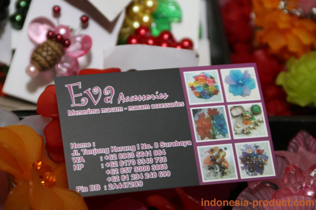 This is one of the accessories shop in Surabaya which has a lot of models choices for women accessories. All accessories jewelries such as necklace, bracelet, key chain, hair accessories, brooch crafts in Eva Accessories are beautiful, unique, and elegant. The flagship of the product is various types of beads brooch. All accessories products made by craftsmen with variety models. Some materials used, include beads, coconut shell, shells, etc. Type of beads are also increasingly diverse. Eva Accessories is designed to represent the highest level of beauty, elegance, exotic, and sophisticate.