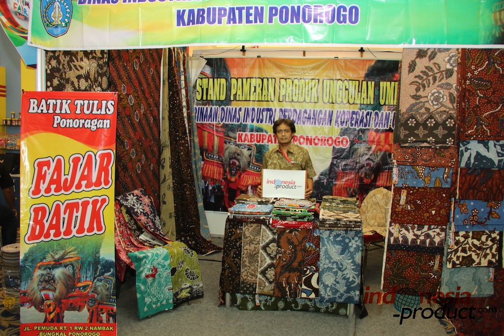Warna Alam (nature color) Batik motif if the signature motifs from Ponorogo, East Java. This kind type of Batik Tulis (drawing batik) producing by one of Batik workshop in Ponorogo named Fajar Batik. Batik Tulis with set of Reog components such as; tiger head, peacock, kuda lumping and a nom poets mask, are assembled in such way. Batik Tulis in peacock motif, drawn simple with horse and arranged in some positions, show its simple I’mpression yet expressive. Then there is also contemporary Batik Tulis in peacock motif arranged with Soka flower and horse. Painted in such way and make the design looks so elegant for shirt.