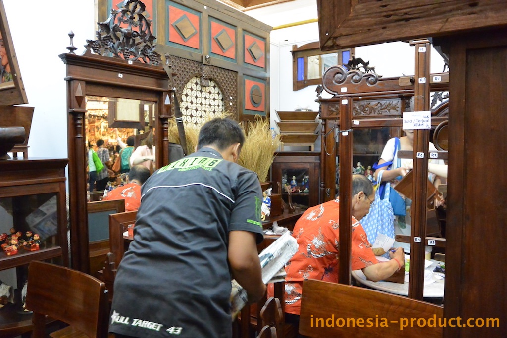 Starting from a family hobby with antique products, Mr. Ali opened the Galeri Lawang with specialty products of antique furniture and other antique sculpture image. Galeri Lawang provides repro furniture as well as reproduces antiques and other handicrafts. He explained that the type of this business is no only providing wide variety of furniture and other antique products, there is also reproduce the goods that have been damaged to be nice again. All products here are handmade and Galeri Lawang produces the process a wardrobe ranges from one week to two weeks of manufacturing.