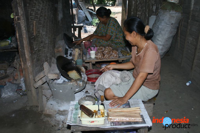 Almost every patisserie scattered in Bojonegoro definitely provide “ledre “. Ledre is typical traditional snack original from Bojonegoro. People in Bojonegoro are very caring and love of traditional snacks that made in the area and they don’t hesitate to introduce ledre snack to all visitors (tourists) who come to the area. Ledre is made from plantain as its main ingredient. With a sweet taste savory, ledre is also rich in protein and without preservatives. Ledre has roll form, like a cake sticks roll snack, astor snack, and semprong snack. Ledre has a length of about 20 cm and diameter about 1.5 cm. Ledre snack has characteristics not only slighter weight if compared with other snacks, but also a light brown color tempting with the taste of banana aroma.