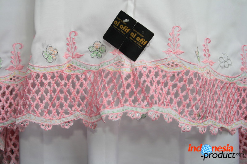 This place is an embroidery workshop in Trenggalek, East Java. This place is the center and special for mukena embroidery. With manual machine embroidery, this place designs comfortable and elegant mukena (female moslem wear for pray) and handbag for mukena with various motifs and colors. Material of this mukena is using cotton to produce its products which cotton material has thick texture, not opaque and body shaping.