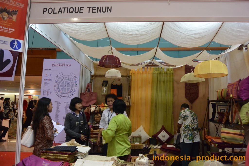 Polatique Tenun is the weaving gallery from Depok, West Java. There are many handicraft products made from ikat fabric and woven fabric with weaving process. Polatique Tenun produces weaving products, such as; ethnic weaving fabric and ikat weaving that is applied in the form of seat cushion, handbag, tote bag, etc. Products of this gallery have unique method process with natural color material. This gallery also offers wedding knickknacks craft that are made from weaving fabric with natural and classic motifs mix. All products here are made by skilled women team as craftsmen with advance design tied into the bundle of handmade production. So, let’s choose your favorite weaving products with many colors and motifs in export quality from Polatique Tenun.