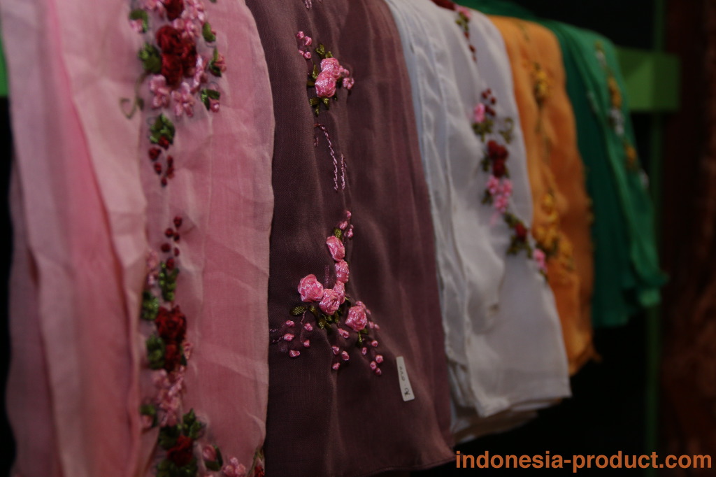 Retno Sembodo also supplies various kind of batik fabrics such as silk batik fabric, cotton batik fabric, and handloom batik fabric with natural or synthesis dye color. Batik fabrics in Retno Sembodo have been made by the skilled craftsmen workshop from Blitar area, so the quality is very concerned and the quality guaranteed. In addition to batik fabric, this workshop supplies embroidery hijab and pashmina for Moslem female with beautiful design and attractive color. Unique characteristics of products in Retno Sembodo can be seen from the originality of design, quality materials and stitching quality.