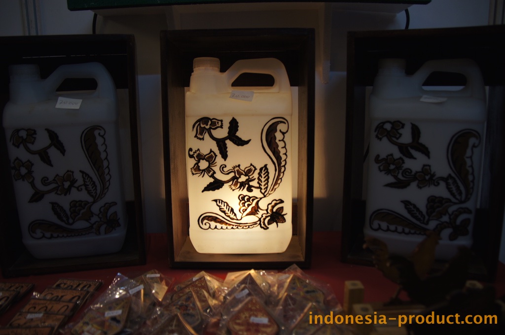 To carve pattern for the lamp, batik is chosen as the ultimate pattern to actively participate for sustaining batik as Indonesia’s heritage. The careful pattern making for the best quality result and making process than only using manual skills made this lamp can be reaching not only in Indonesia market, but also Japan, Canada, and India market. There are various patterns have often sold, ranging from various kinds of batik pattern, oriental pattern, company logos or football club logo, name or initials, until nuanced religious pattern.