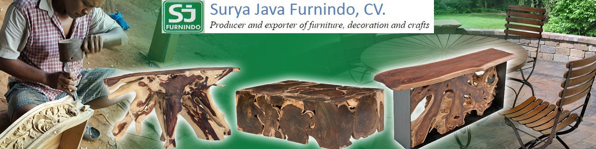 Furniture, decorative stuff and crafts have been a part of our life and already become the premium need of us. In our home, office, garden and others we’ll find all variant of furniture, decorative stuff and crafts. As a producer and exporter of furniture, decoration and craft products, Surya Java Furnindo would like to fulfill your desire in furniture, decorative stuff and crafts. All products here have been using the right tropical woods and other raw material with some of level of grades. Surya Java Furnindo has been growth since 2012 until now days and this manufacturer has never stop learning about improving skill and quality of furniture, decoration, accessories and crafts needed. There are many kinds of raw material that used for making products, such as wood, root, petrified wood, onyx, marble, river stone, concrete, synthetic rattan, banana leaf, water hyacinth, leather, resin, stainless steel, copper, aluminum, brass and iron. Surya Java Furnindo has been trusted partner of some projects for hotels, housing, restaurant, apartment, condominiums, Mosque, church, offices, etc.