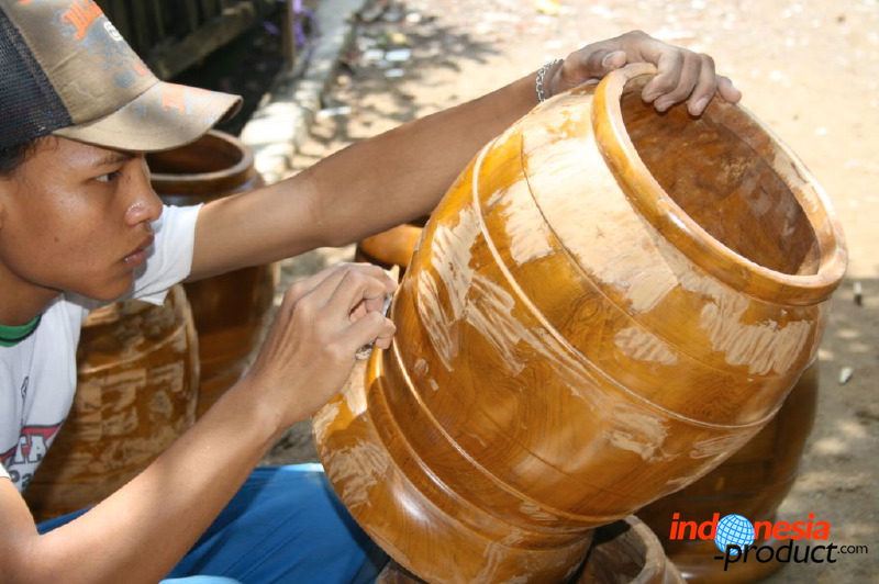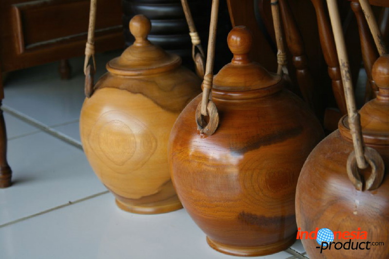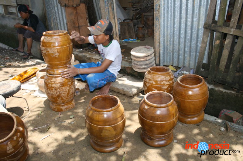 Wooden souvenir craft industry in Bojonegoro is different from teak wood carving crafts in general. If most manufacturers or artisans use teak wood carving new ones, then carving craftsmen in the village of Bojonegoro rely on raw materials from teak wood waste originating from a forest area in the Kasiman and Kedewan District. If in Margomulyo many artisans make handicrafts from teak root, then craftsmen in Kasiman make wooden souvenirs products that getting smaller. For example create a vase, fruit bowl and plate, spot lights, ewer, jar, calligraphy, ashtray, pen, and more. Besides on that, there are supplying indoor and outdoor furniture craft that made from solid teak wood.