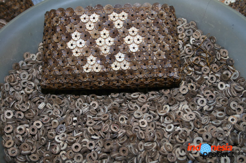 Pieces of coconut shell are formed small circles as needed with a special tool, then the base material is affixed with glue on fabric that has been in shape to fit the size of the bag. Furthermore, the manufacture of semi-finished this will be sewn by hand in such a way that the patch could not be separated cranium decoration. Needless expertise specifically, after the end of the process stitched after giving various kinds of batik cloth in the middle of the bag, so the products look more interesting and exotic. All unique products such as handbag, tissue box, tea pot, wallet, etc. are made by craftsmen with variety models. This gallery always release new product item in a new design and excellent models. Custom orders are welcome, and customer’s requests are carefully taken into consideration in details. This gallery is also ready to produce custom demand in any numbers. Design your own custom and contact this gallery;